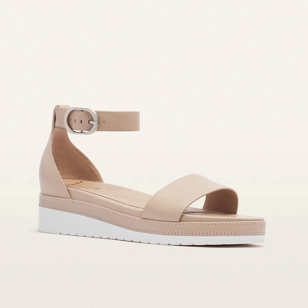 Let your look rise to the occasion with Skye in Black Tumbled, a sleek essential with a little extra lift. Fashion meets function with a flattering flatform, wedge silhouette set on a dual-density, lightweight sole. Designed with a closed back and adjustable ankle strap for secure wear, Skye is the modern sandal that lets your warm-weather style reach new heights without compromising on comfort.